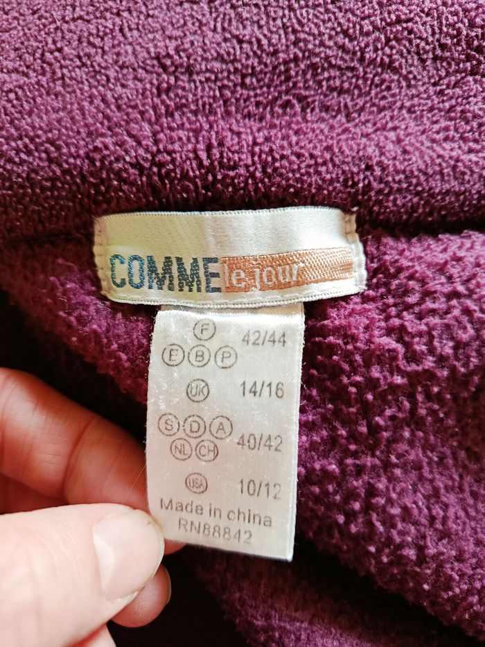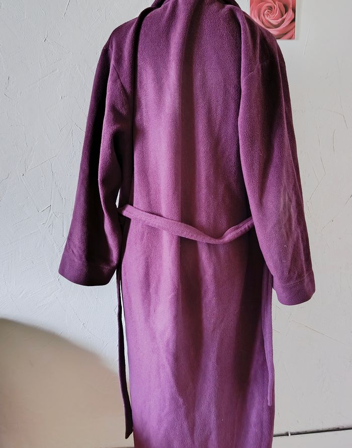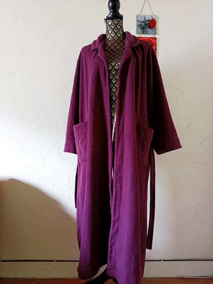 Joli peignoir violet. Se ferme par un petit lien à l'intérieur plus la grosse ceinture normale. 2 poches. Largeur à plat d'une aisselle à l'autre pris au dos : 61cm, longueur depuis le dessus de l'épaule : 125cm environ. #frip_femme42 #frip_femme44