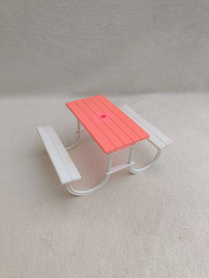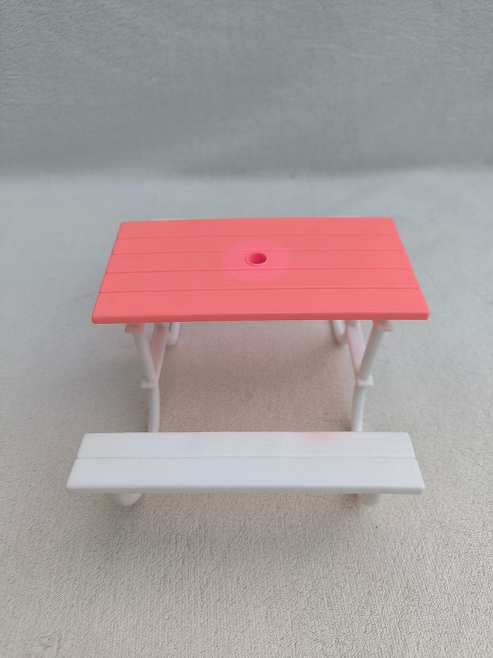 Table de pique-nique / picnic Marque Barbie • Coloris blanc, rose • Marque plateau sur la table • Sans accessoires • Démontable Modèle ancien, vintage En très bon état #evelyne_jeux