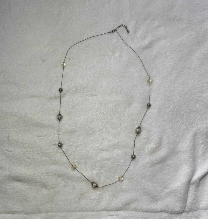 Sautoir argenté et blanc – Élégance intemporelle - photo numéro 1