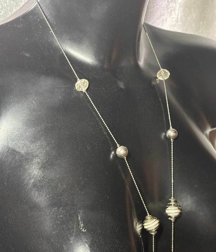 Sautoir argenté et blanc – Élégance intemporelle - photo numéro 4