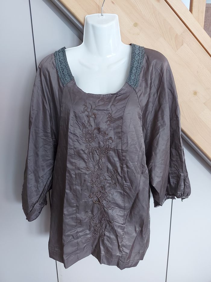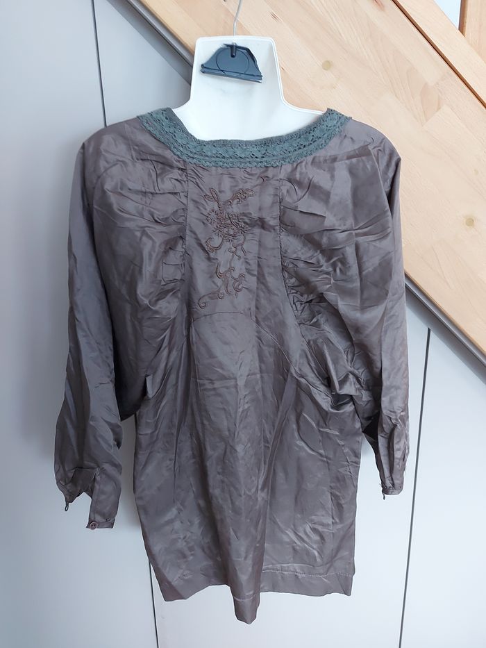 Blouse satinée brodée, marron Laklook Taille S Neuve