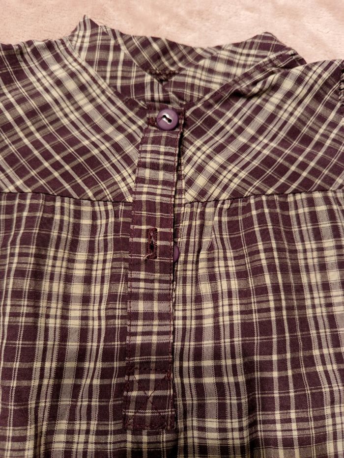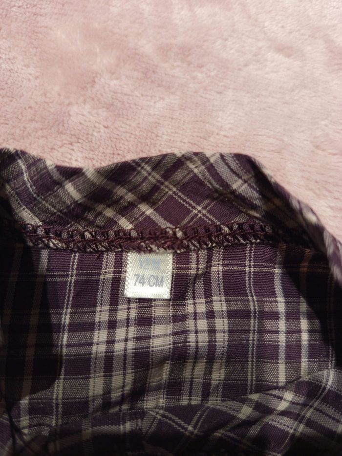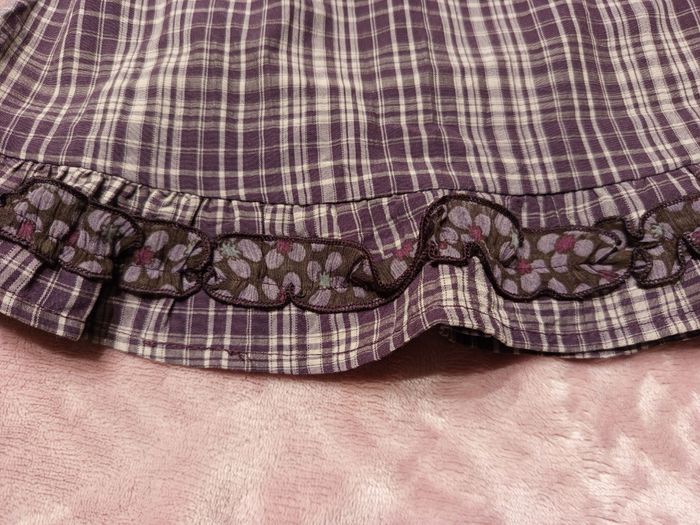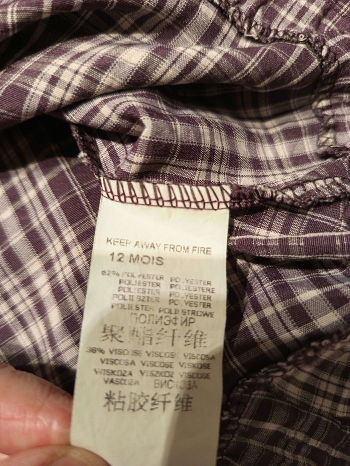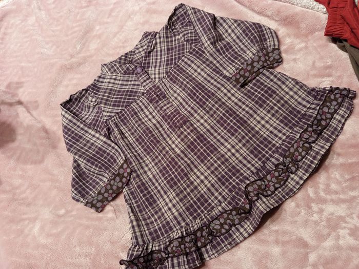 Chemise blouse, col officier, à carreaux violets, 12 mois, en polyester et viscose, très bon état