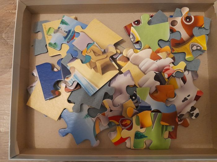 Vends puzzle pat patrouille 35 pièces très bon état. 1 défaut : "coloriage" au feutre sur le fond de la boîte 😅