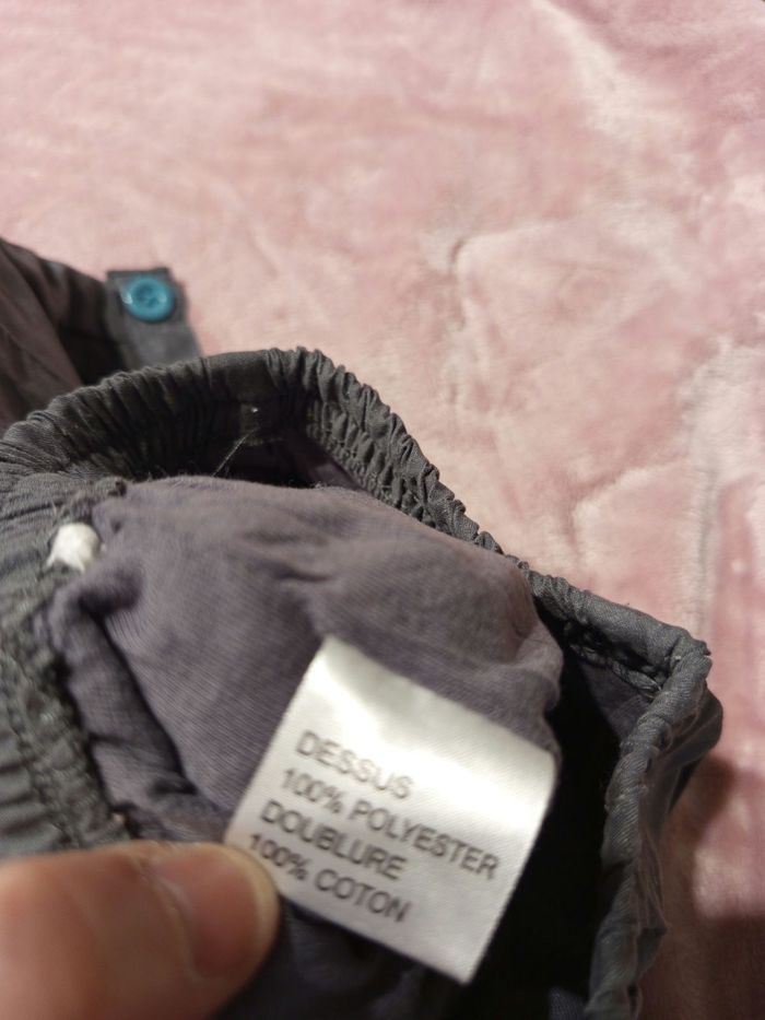 Ensemble fille pantalon marron, taille élastique, doublé, chaud, et haut bleu clair effet superposition des manches. Très bon état, en coton et polyester