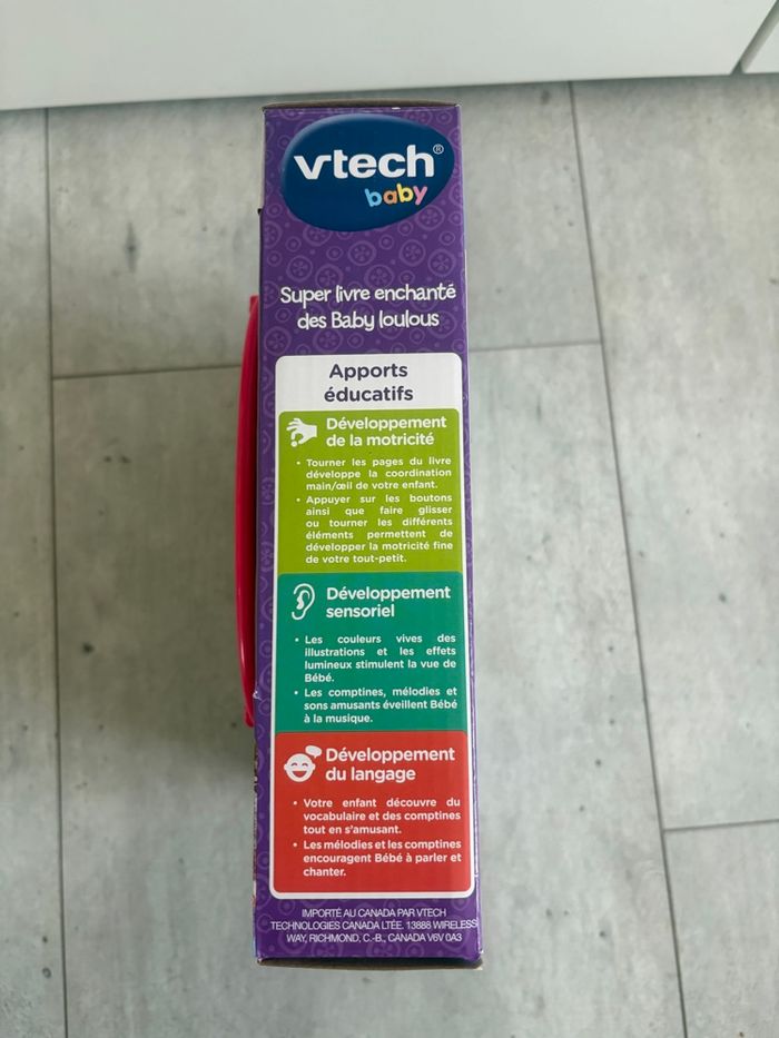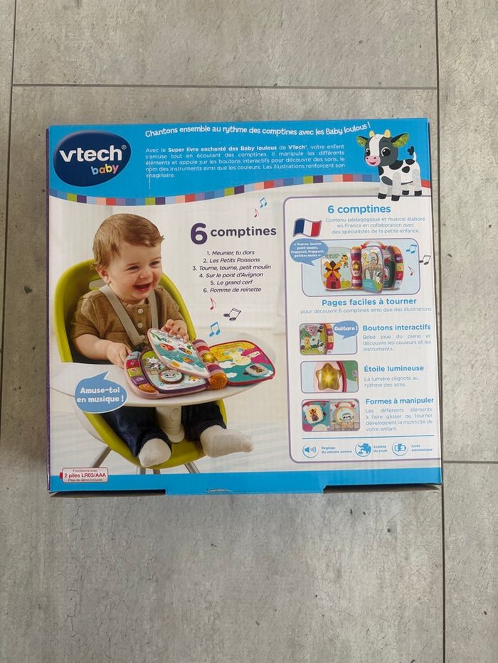 Je vends ce super livre enchanté de la marque Vtech, idéal pour les tout-petits. - Type de produit : Jouet d'éveil - Marque : Vtech - Âge recommandé : De 6 à 36 mois - Fonctionnalités : 6 comptines, pages à tourner, boutons interactifs, étoile lumineuse État neuf. N'hésitez pas à me contacter pour plus d'informations ! Envoie rapide et soigné