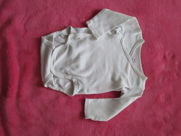 Vends body blanc H&M à manches longues en coton. Taille 3 mois. Très bon état. Pour plus de choix, allez consulter mes autres annonces.