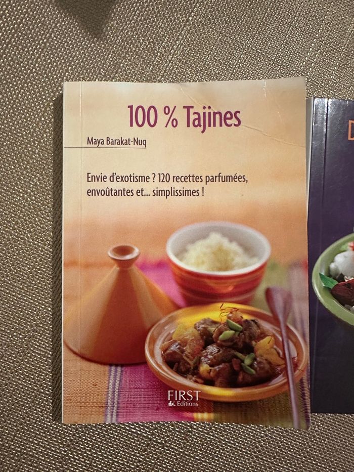 2 mini livres de cuisine 100% Tajines Dîners improvisés Parfait état Disponible sur Rouen et alentours ou envoi par colis
