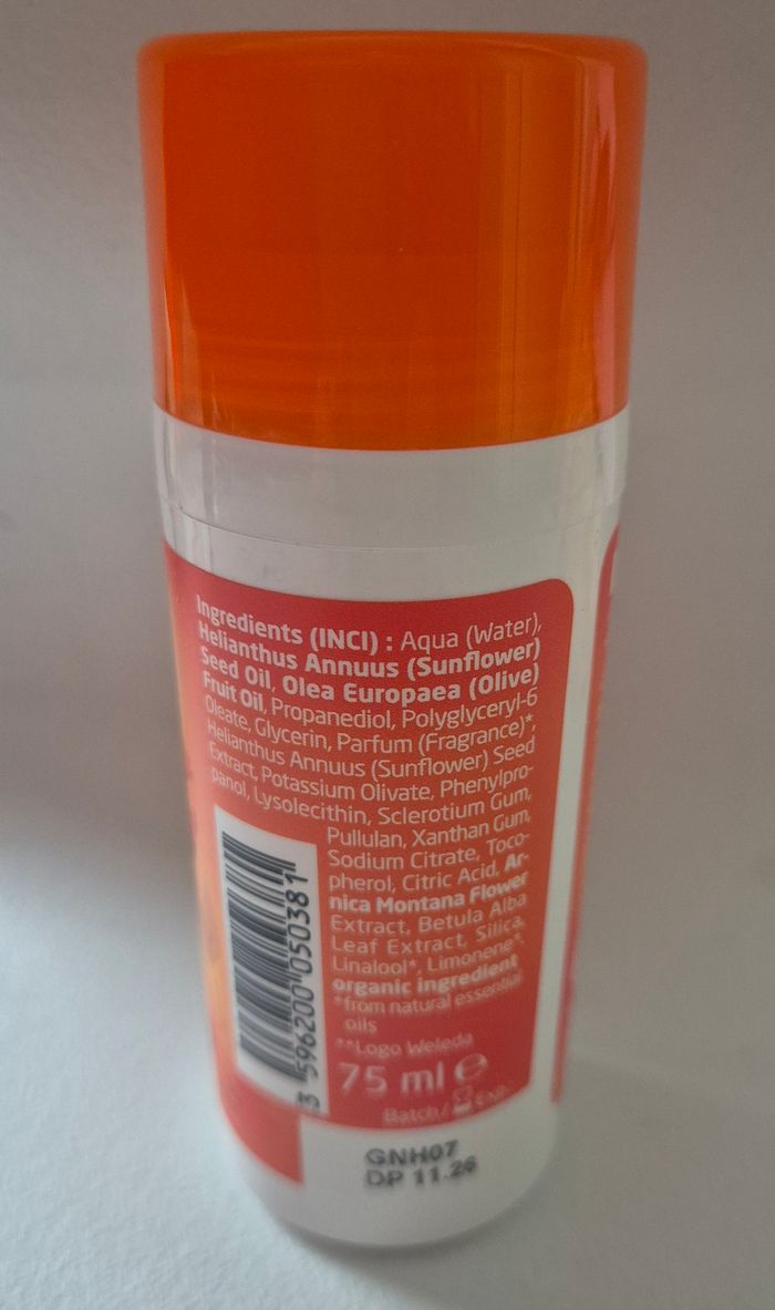 Le Roll-on à l'Arnica bio de Weleda semble être un produit conçu pour favoriser la relaxation et la récupération sportive, notamment grâce à son application par massage à l'aide de la bille. Voici quelques points à retenir : Utilisation pratique : Le roll-on est un format pratique pour une application ciblée sur des zones spécifiques du corps. Action relaxante et décontractante : Grâce à l'action de l'arnica bio, ce roll-on aide à détendre les muscles et à soulager les tensions, ce qui en fait un choix idéal après un effort physique intense. Effet tonifiant : En plus de son action décontractante, le roll-on peut également avoir un effet tonifiant sur la peau et les muscles, favorisant ainsi une récupération plus rapide. Application facile : La bille du roll-on facilite l'application du produit en permettant un massage précis et agréable sur les zones concernées. Format pratique : Disponible en flacon de 75 ml, ce format est facile à transporter et à utiliser, que ce soit à la maison, à la salle de sport ou en déplacement. En résumé, le Roll-on à l'Arnica bio de Weleda semble être un allié précieux pour les sportifs et pour toute personne cherchant à soulager les tensions musculaires et à favoriser la relaxation après l'effort. Son format pratique et son action décontractante en font un produit intéressant pour intégrer dans une routine de récupération sportive