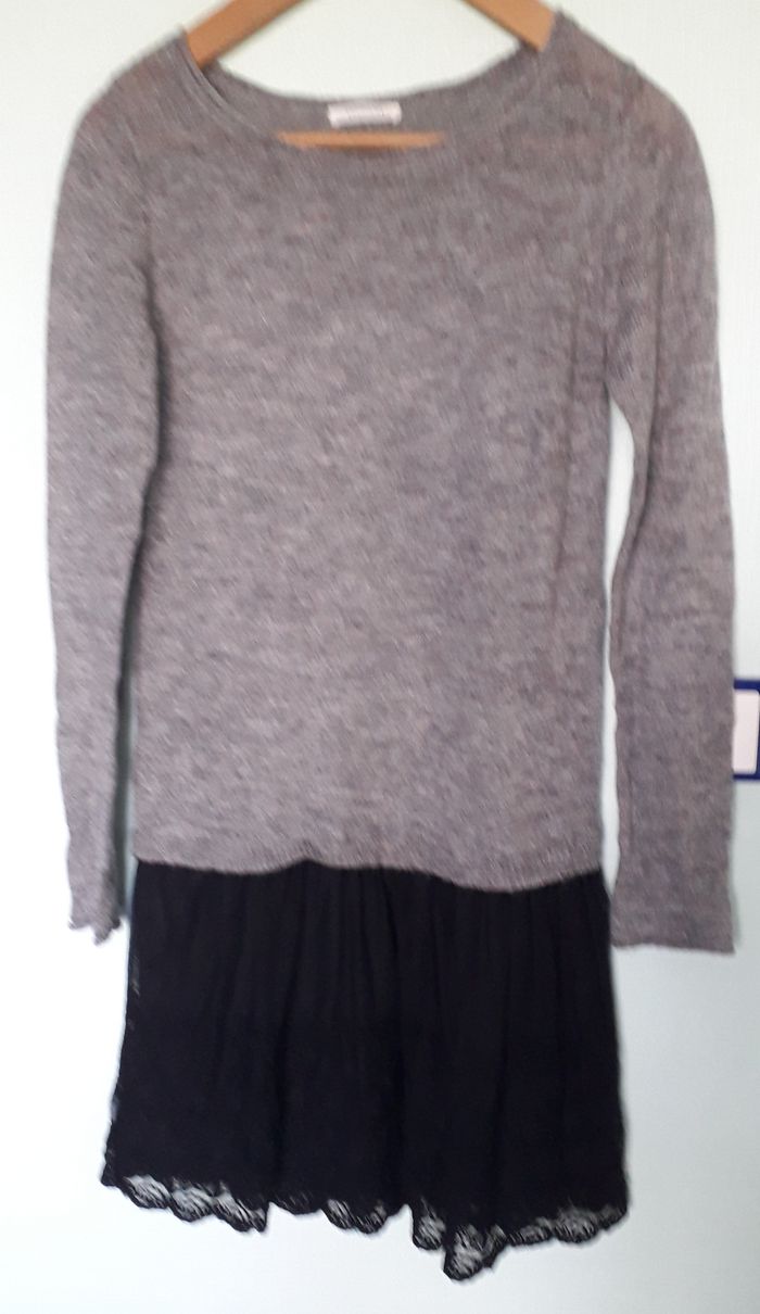 ROBE lainage, taille S (36/38), marque PROMOD - Couleur : Gris et noir - 46 % acrylique, 40 % nylon, 9 % mohair, 5 % laine - le bas 100 % nylon - TBE