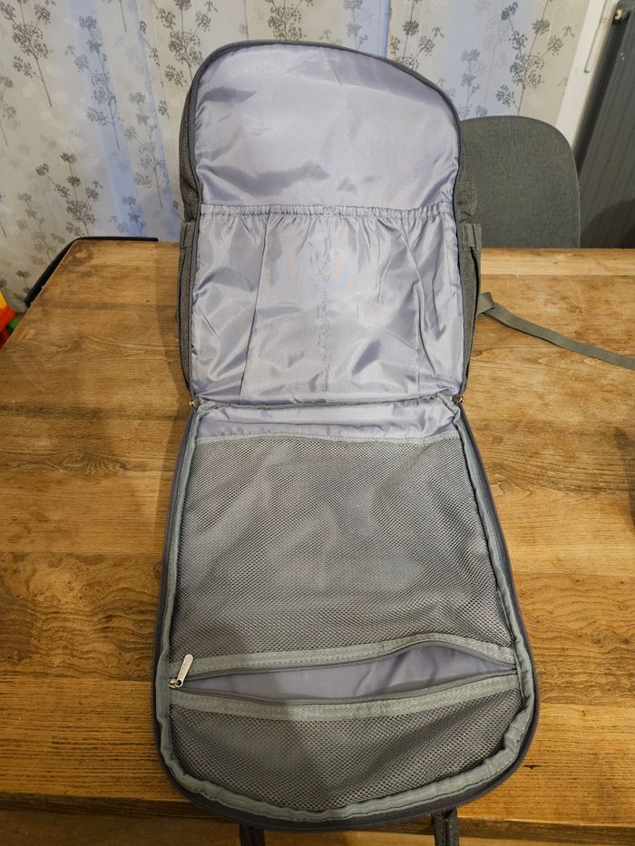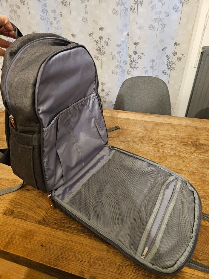 Très beau sac à dos à langer Plein de poches très utiles pour ne rien oublier Très pratique. Accroche tétine fourni