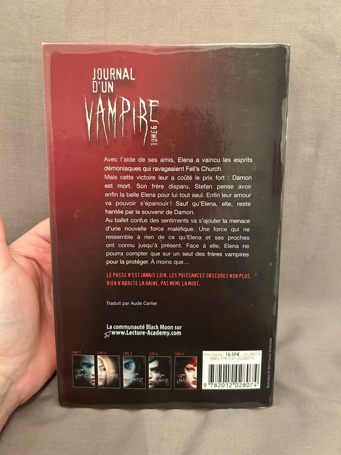 Livre journal d’un vampire tome 6 Lu une fois, très bon état, recouvert d’un film adhésif transparent pour le protéger