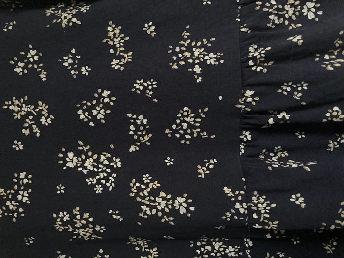 Robe courte / tunique pour fille de la marque TEX, taille 6–7 ans. Coloris bleu marine avec de jolis motifs fleuris écrus. Détails volants aux épaules qui apportent une touche élégante et féminine. Coupe confortable, facile à porter au quotidien, aussi bien en robe l’été qu’en tunique avec un legging ou un jean. Article en très bon état, propre et bien entretenu.