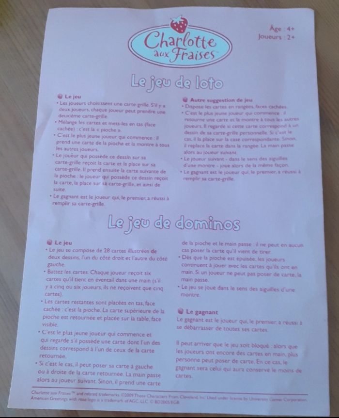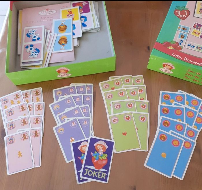 Je vends cette boîte de jeux éducatifs Charlotte aux fraises, comprenant différents jeux comme le loto, les dominos et les chiffres et couleurs. Boîte complète avec les règles des jeux. - Type de produit : Jeux éducatifs - Marque : Autre - Gamme / Licence : Charlotte aux fraises - Composition du lot : Loto, dominos, jeux de cartes, règle de jeu - Apprentissages : Chiffres, couleurs Bon état, comme sur les photos. Idéal pour les enfants de 4 à 6 ans ! N'hésitez pas à me contacter pour plus d'informations.