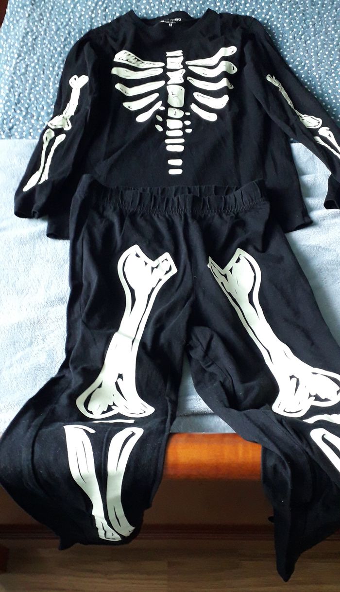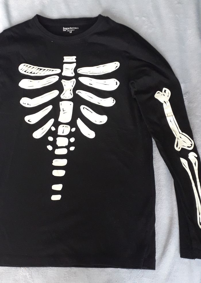 PYJAMA 2 pièces, taille 12 ans, marque IN EXTENSO - Couleur : Noir et blanc phosphorescent - 100 % coton - TBE