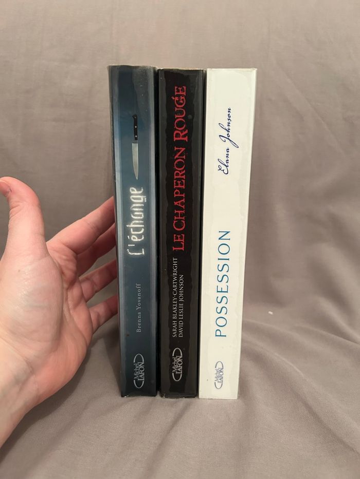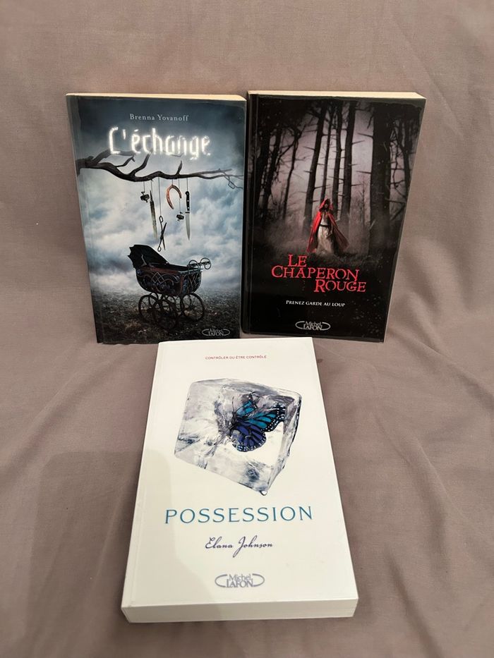 Lot de 3 livres jeune adulte Éditions Michel Lafon L’échange, le chaperon rouge et possession Très bon état, lu une fois, recouverts d’un film adhésif transparent pour les protéger