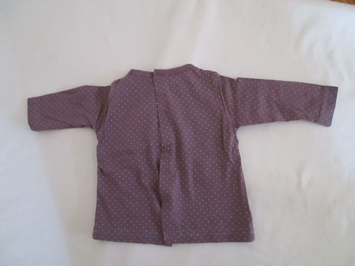 Vends brassière Les P'tits Babies à petits pois. S'attache par des pressions derrière dans le dos. Petit nœud sur le devant. 100 % coton. Taille 3 mois. Excellent état. Pour plus de choix, allez consulter mes autres annonces.