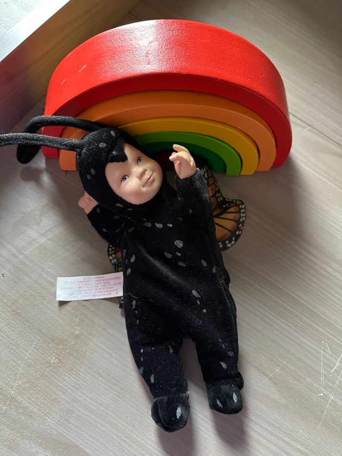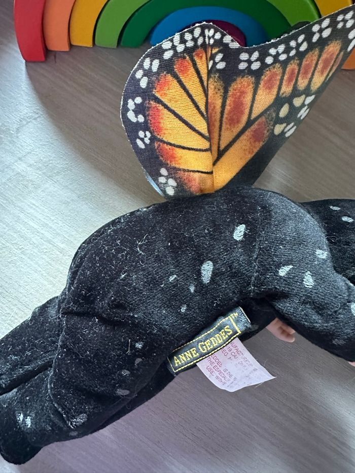 Poupée papillon 23 cm env. ANNE GEDDES 1998 corps souple EN PELUCHE Les yeux sont ouverts. Regard DOUX ET PAISIBLE.