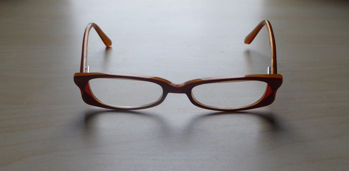 Monture de lunettes, couleur marron Marque : Afflelou 108 49□17 370 135 mm Dimensions des verres : environ 2.7 x 4.7 cm Verres loupe qui peuvent être changés Monture en très bon état