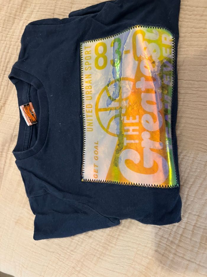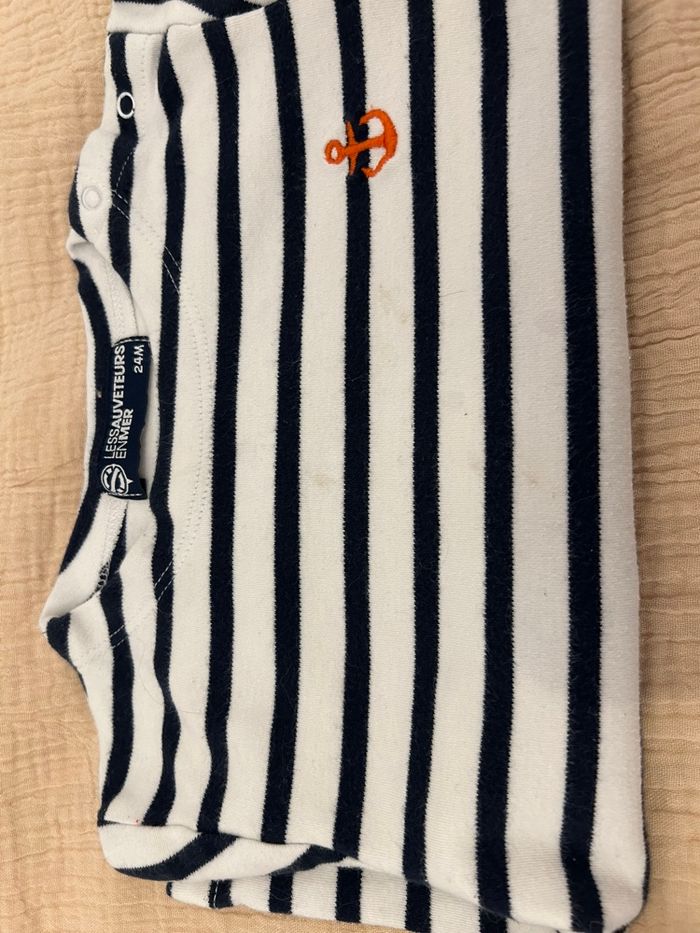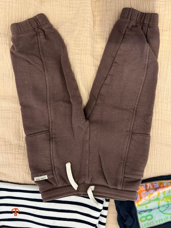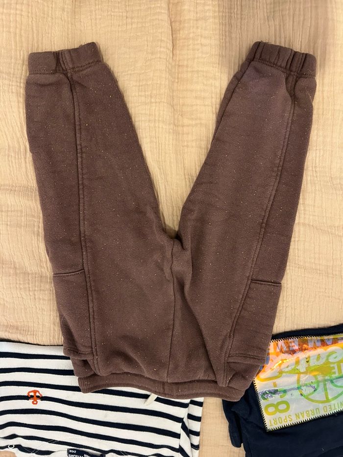 Pantalon marque Kiabi en parfait état mais 2 t-shirts avec défauts : prints pour l’un et taché sur l’autre donc donné avec le pantalon.