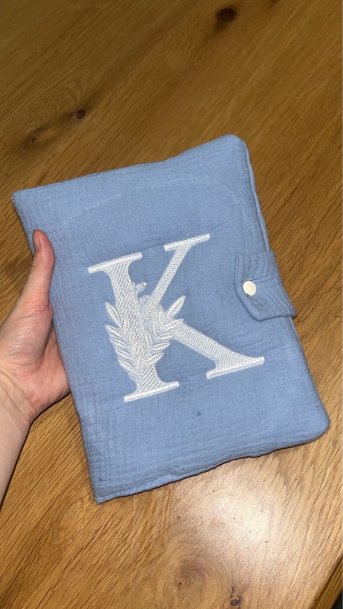 carnet de santé en broderie avec lettre fleurie couleur au choix