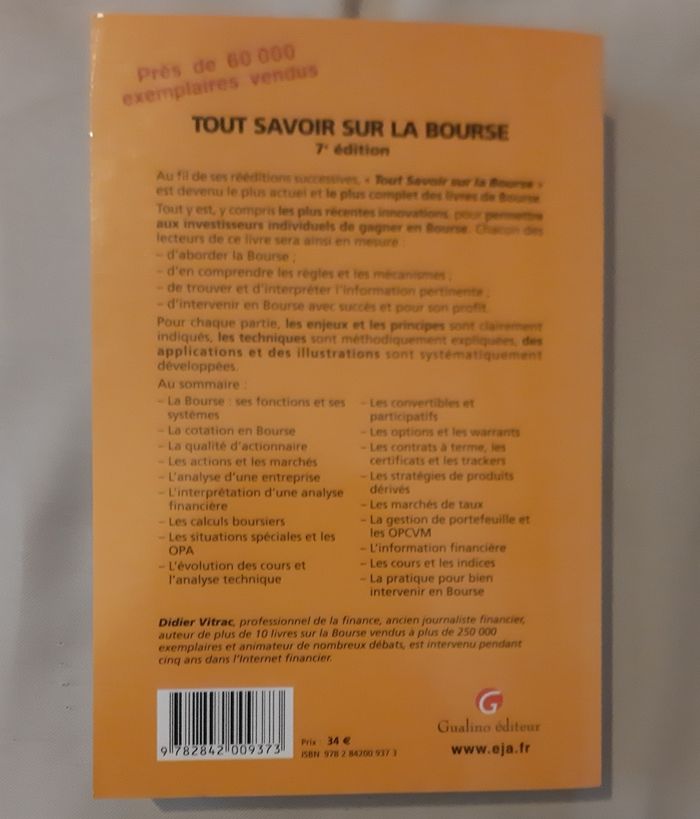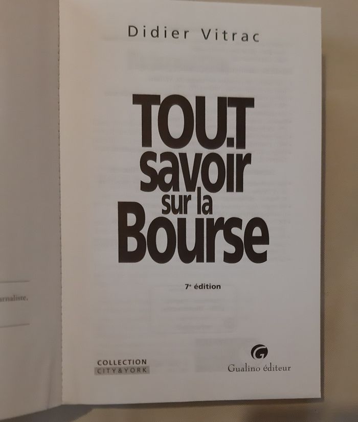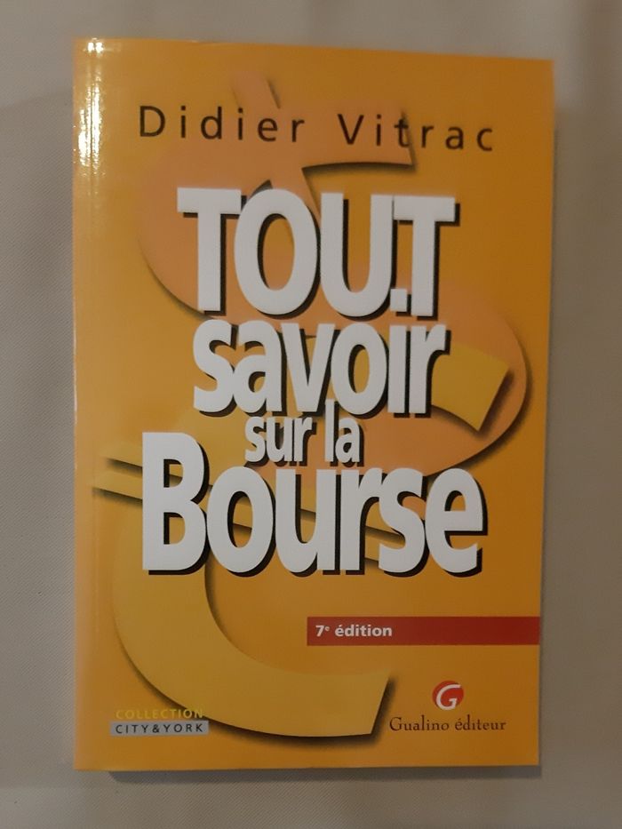 livre "Tout savoir sur la bourse" de Didier Vitrac, édition 2006. Comme neuf. Prix neuf : 34 € 📦 Envoi possible. 🛍 Remise en main propre possible dans le secteur de Pont-Audemer, Beuzeville, Epaignes, Pont-L'évêque. 🏷 jusqu'à 15 % de réduction pour l'achat de plusieurs articles