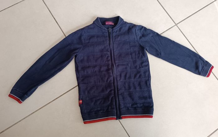 Bonjour, Vends un lot Taille 7 ans comprenant : 🔷 Un gilet chaud Sergent major, très bon état 🔷 Un jogging (un léger trou et une trace de stylo / voir photos)