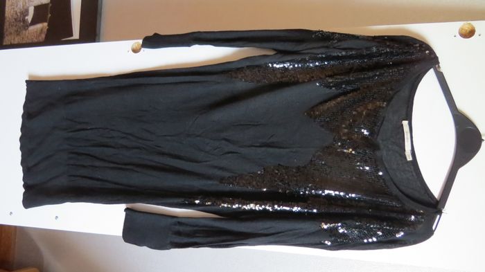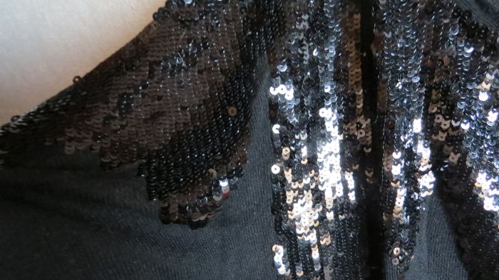 robe pull fin - manches longues - encolure ronde - empiècement haut pailleté - ouverture fantaisie épaules