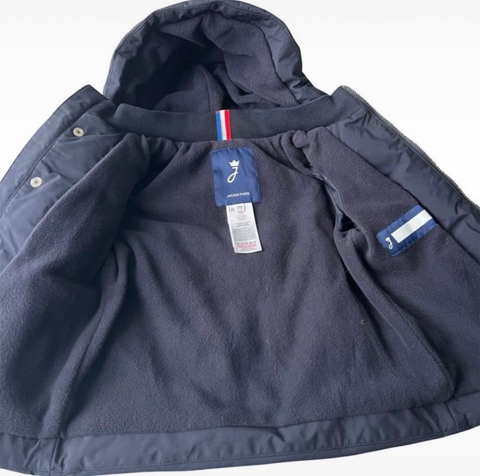 Splendide parka JACADI déperlante marine. Ce modèle est encore dans la collection actuelle. Elle est en magasin au prix de 99 € Je la vends à 45 euros - Doublure en micropolaire. - Col et bas de manches en bord-côte - Fermeture par zip et rabat pressionné - Macaron Jacadi sur une des manches 12 mois 74 cm