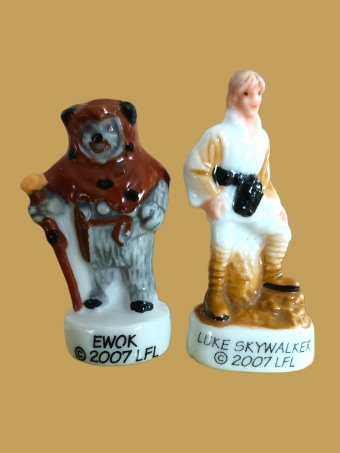 Lot de 2 fèves de collection Star Wars 2007 Luke Skywalker + Ewok pour fabophile Finition brillante Excellent état
