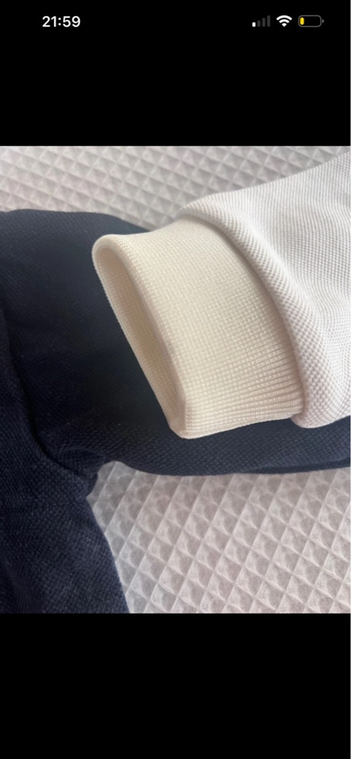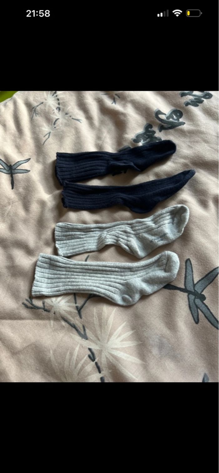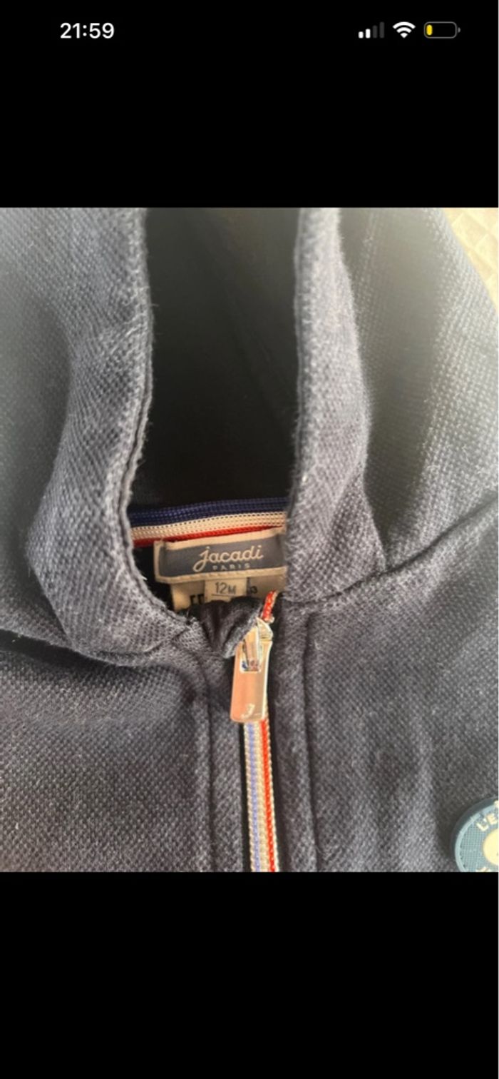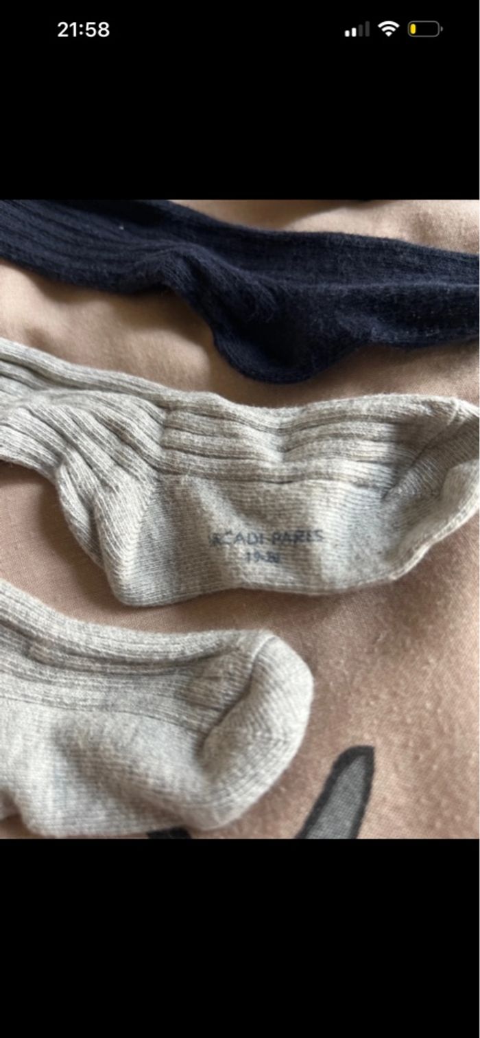 Taille 12 mois Ensemble bleu marine en très bon état Ensemble blanc présente de légère tache 2 paires de chaussettes taille 19-20 très peu porté