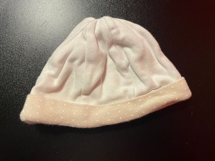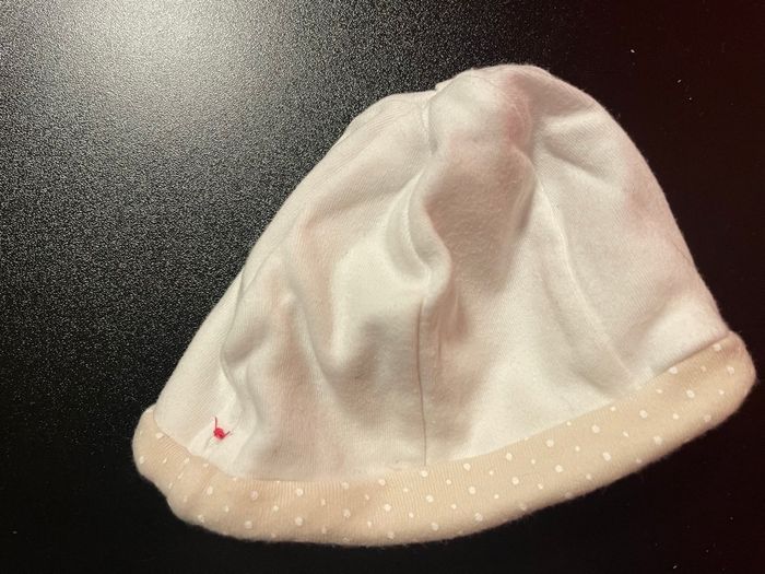 Bonnet de naissance blanc et beige en coton 🍼 Très bon état, très peu porté 🌟 Taille naissance, marque Sauthon (étiquette présente) Confortable et tout doux pour les premiers jours 🤍 #bonnetnaissance #naissancebebe #maternite #sauthon #naissance 021