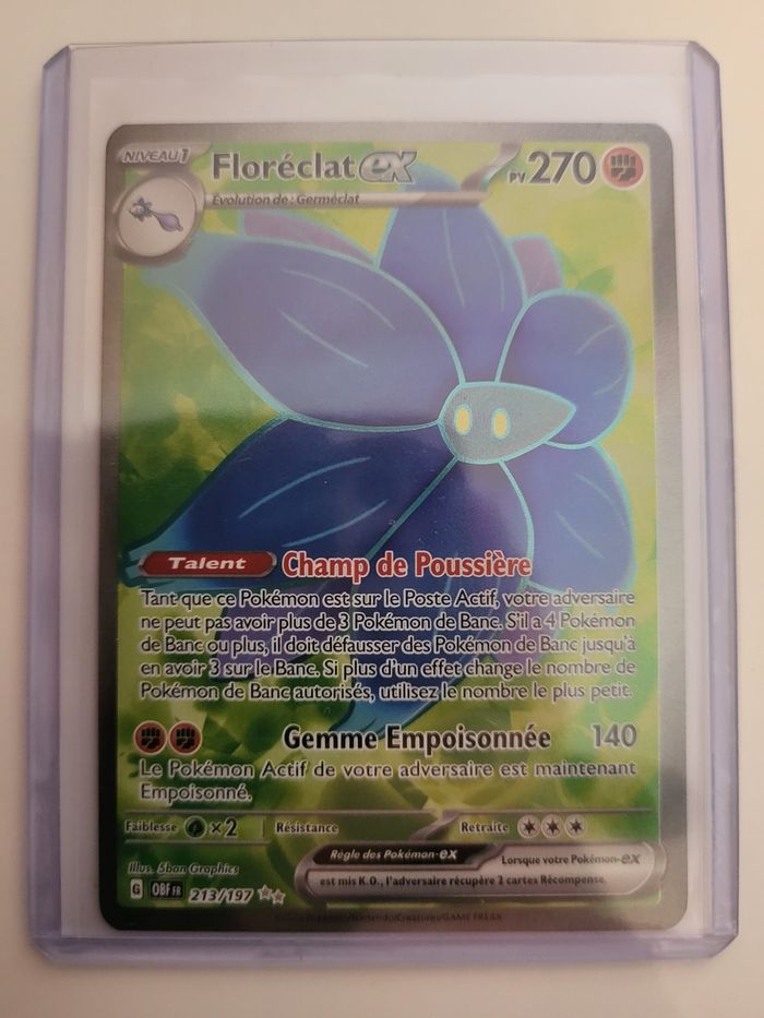 Carte Pokémon Floréclat EX 213/197 de la série Flammes Obsidiennes Carte neuve, française et officielle ! Mise sous sleeve + toploader dès la sortie du booster