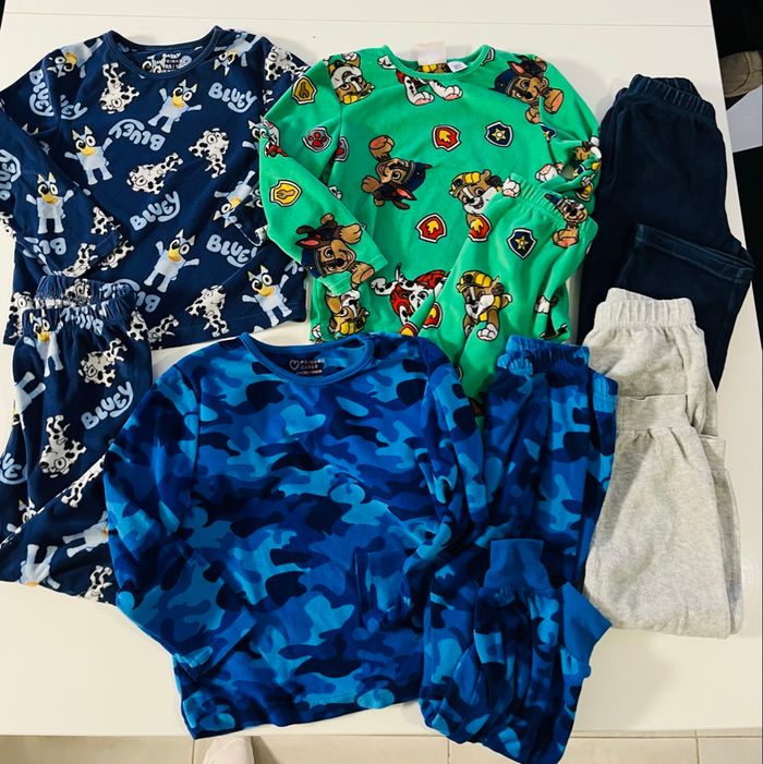 Lot de 3 pyjamas chaud taille 3/4 ans + 2 pantalons pyjamas taille 4 ans En très bon état