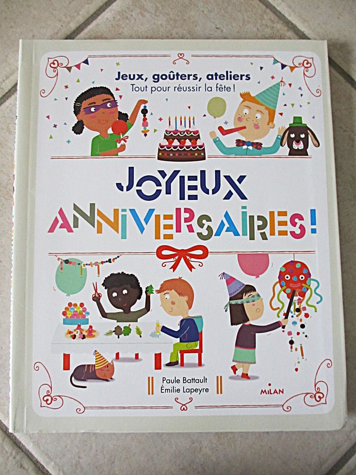 Livre « Joyeux anniversaires ! » - Milan 109 pages. Jeux, goûters, ateliers, tout pour réussir la fête ! Très bon état.