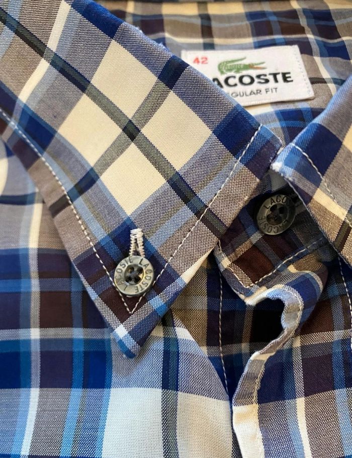 Chemise Lacoste homme – Carreaux bleus – Regular Fit – Taille 42 - photo numéro 2