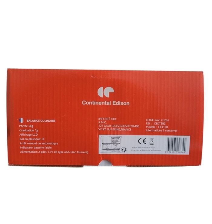 Balance culinaire Continental Edison Réf : CEKT5B2 - MAX 5kgs - Échelle 1g - Écran LCD