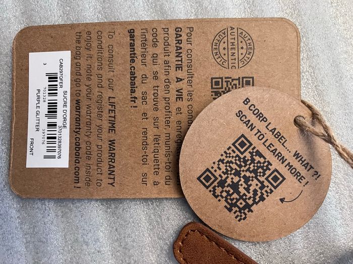 Pochette avant médium Marque Cabaia, modèle sucre d’orge Édition limitée numérotée Ancienne édition avec l’ancien logo Couleur violet pailleté Neuve avec étiquette