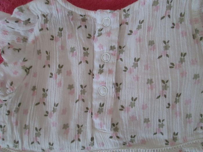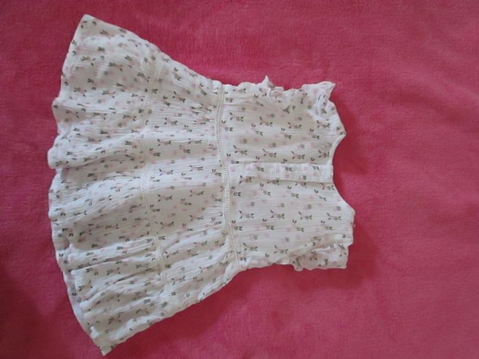 Vends robe fleurie Fashion Private Company Baby. Doublée sur toute la longueur. Extérieur : 100 % viscose Doublure : 100 % coton. Taille 3 mois. Comme neuve. Pour plus de choix, allez consulter mes autres annonces.