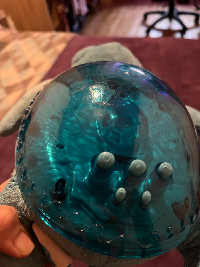 Veilleuse tortue, fonctionne avec piles. Quels petites rayures sur le dos rien de méchant.