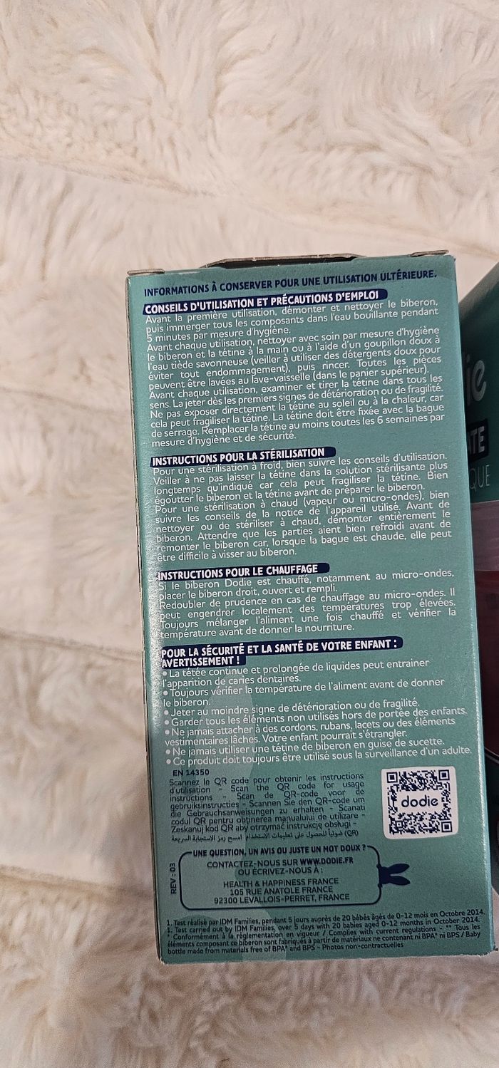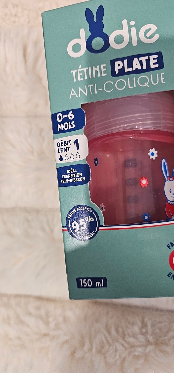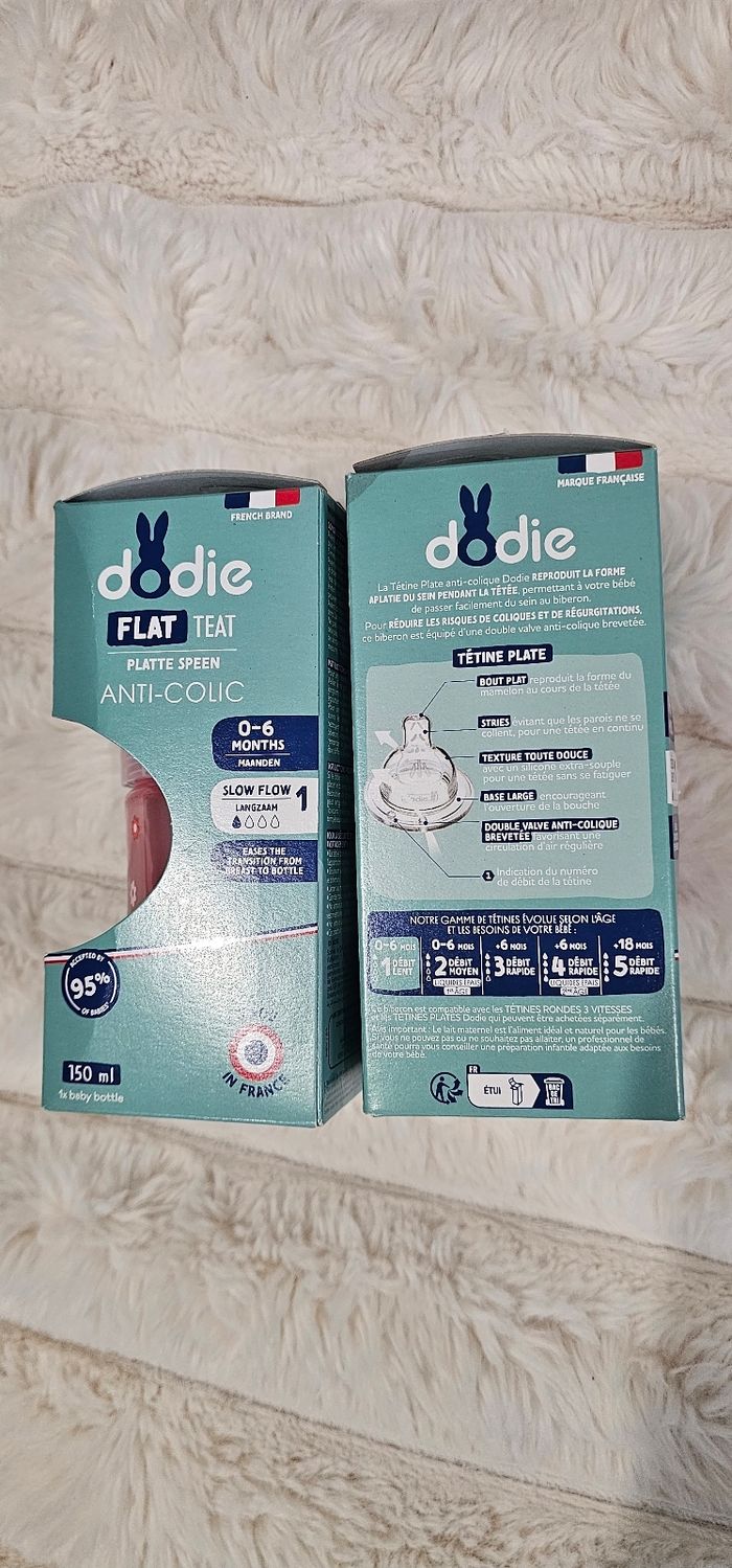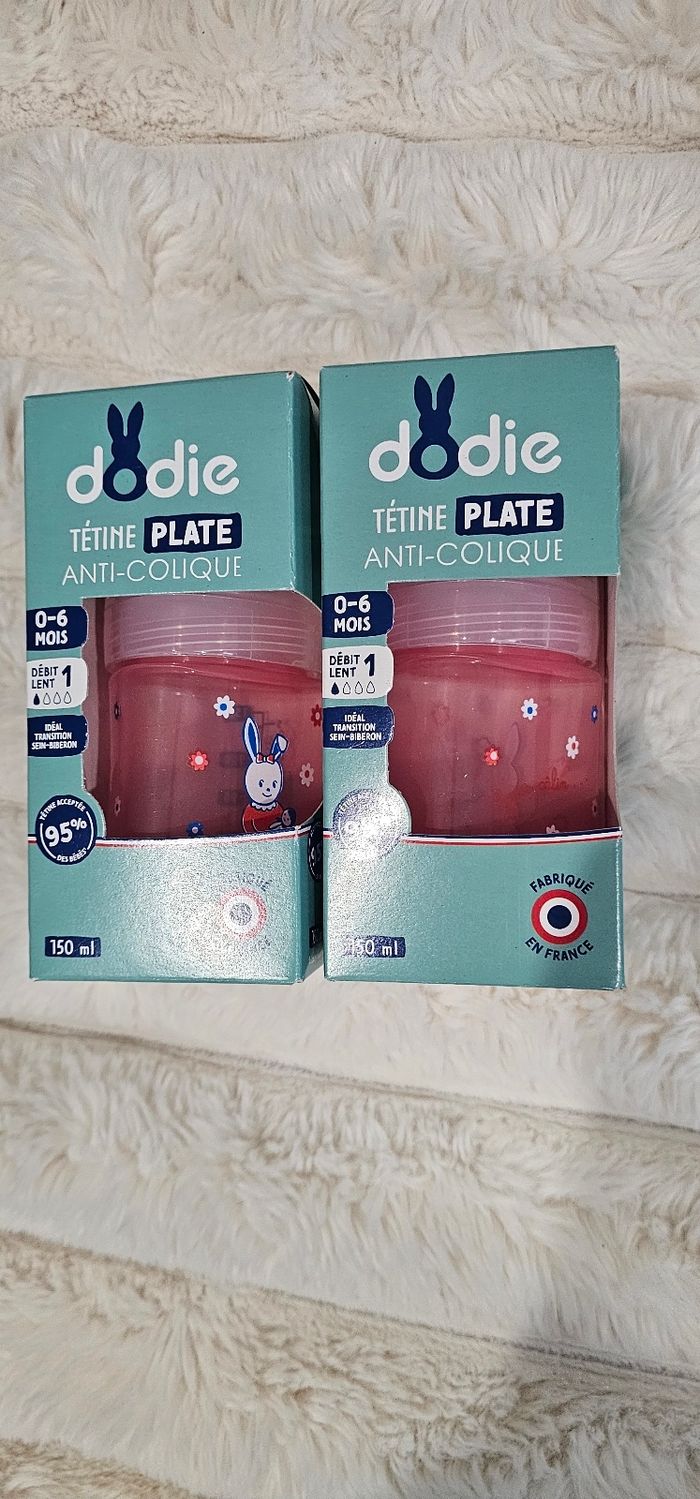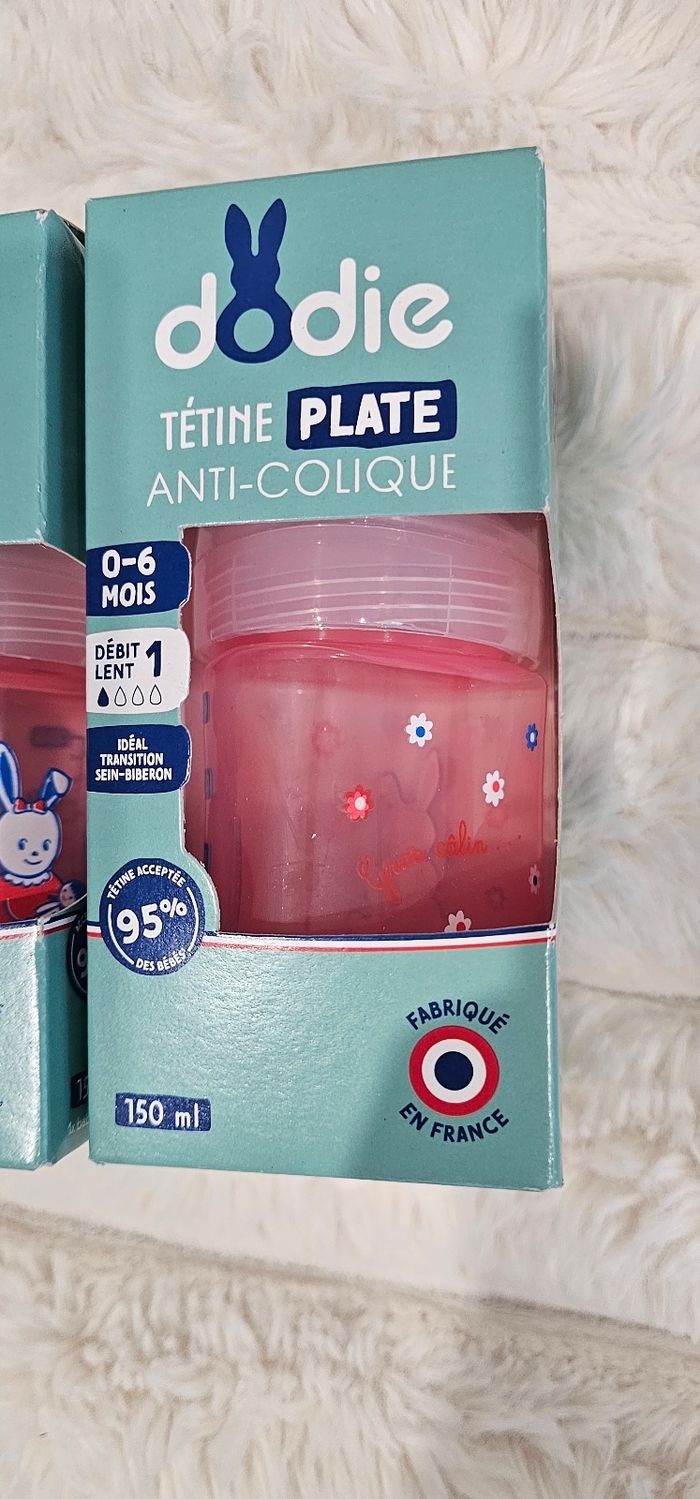 Lot de 2 biberons anticoliques Dodie. ☆ Tétine plate ☆ 0-6 mois ☆ Débit lent ☆ 150ml ☆ Fabrication française Neufs