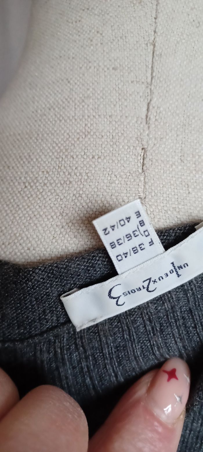 Très jolie robe pull T 38/40 État nickel Vous pouvez retiré le nœuds voir photo État nickel Marque un deux trois N'hésitez surtout pas à faire des lot pour économiser les frais d'envoi