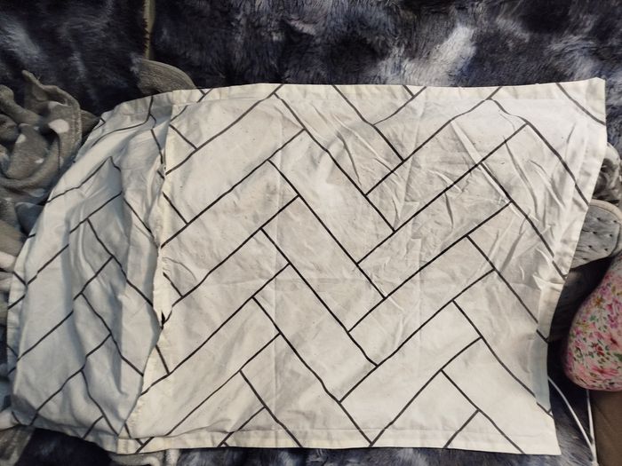 Réversible. Contient 2 taies d'oreiller 1 drap plat et 1 housse de couette Bon état