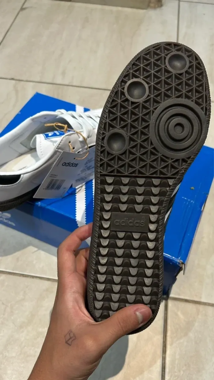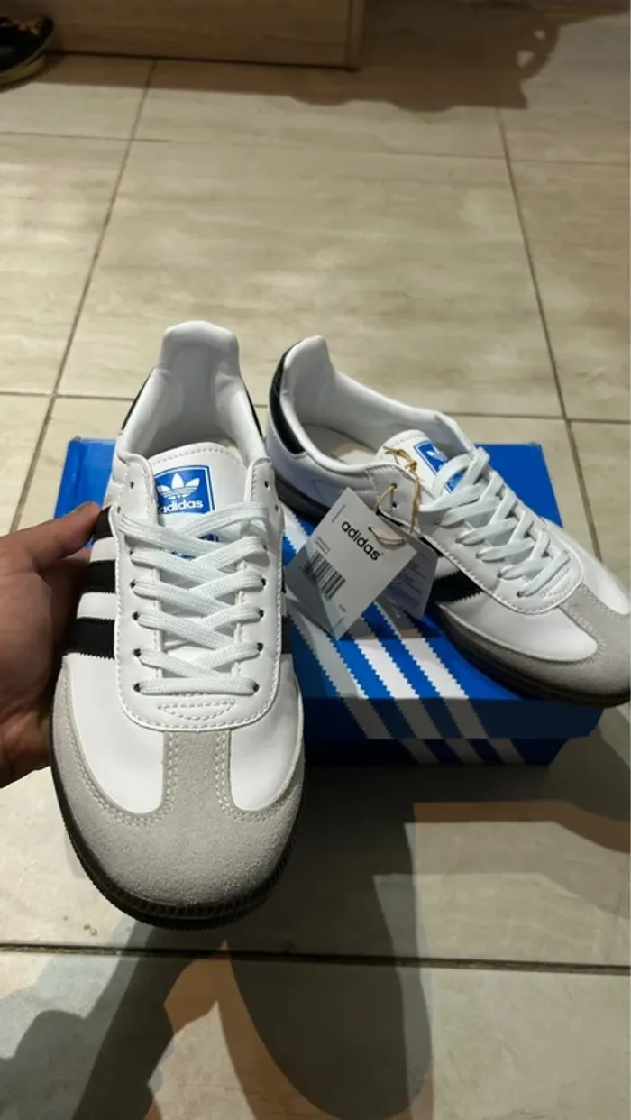 Chaussure adidas Samba - Taille 40 Neuf avec étiquette · Modèle iconique et intemporel ✨État : Neuf, jamais porté, impeccable et dans sa boîte d'origine. ✨Marque : adidas, la référence incontournable du style sportswear. ✨Style : Design classique et reconnaissable entre tous, avec son surette en cuir gum et ses trois bandes signature. ✨Polyvalence : La chaussure idéale pour toutes les tenues. Se porte avec un jean, un costume, un short ou une jupe. Livraison soignée et rapide 📦 Un incontournable des dressings, idéal pour compléter votre collection ou pour un cadeau sûr !
