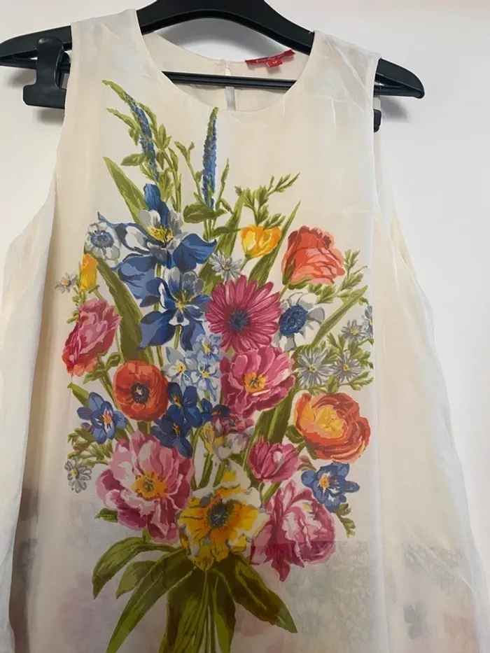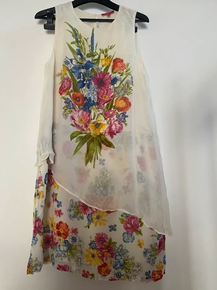 Superbe robe vintage René Derhy printanière taille M Thème floral effet de superposition peut convenir pour une cérémonie fête Largeur aisselles 46 cm Longueur 89 cm environ