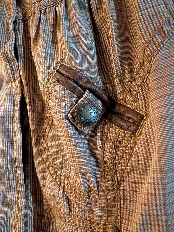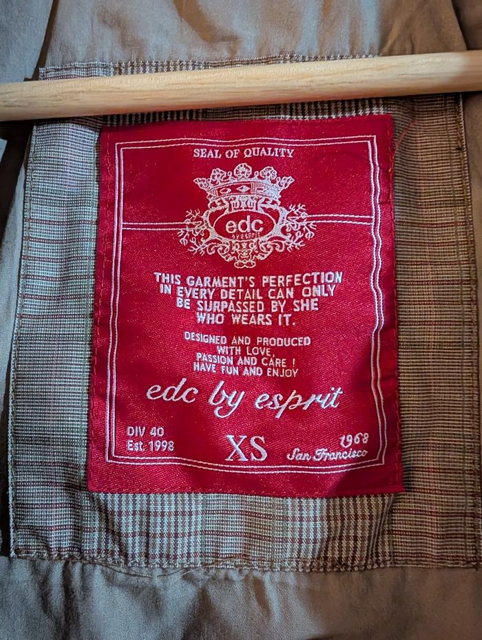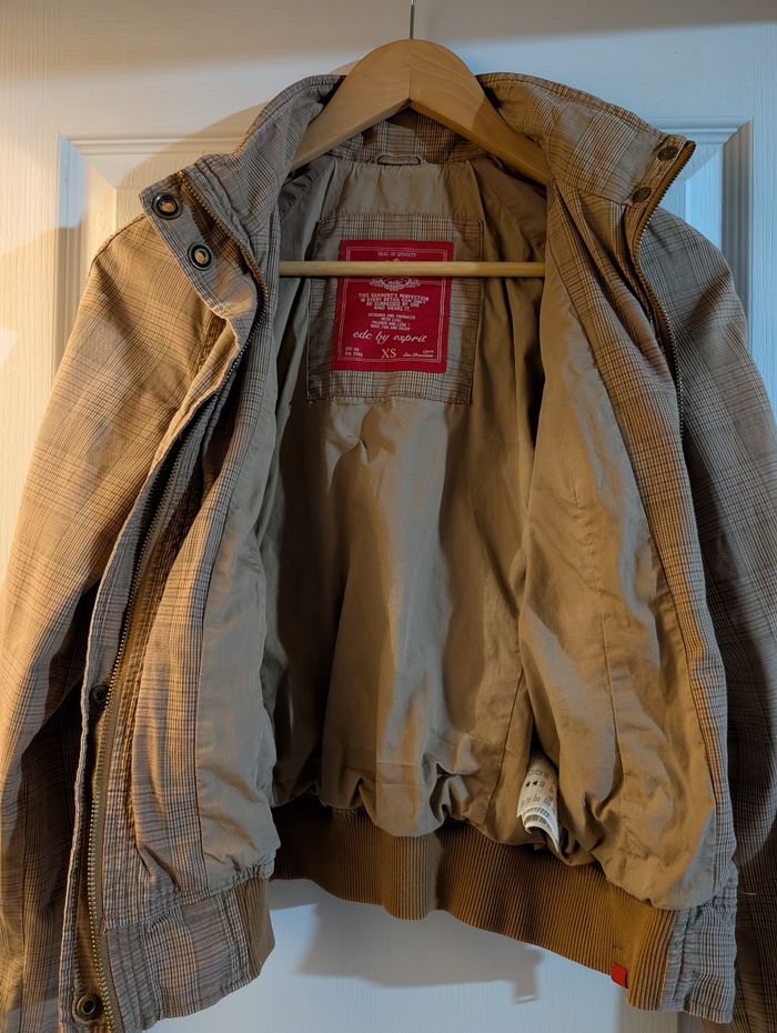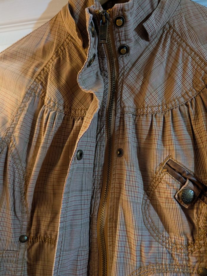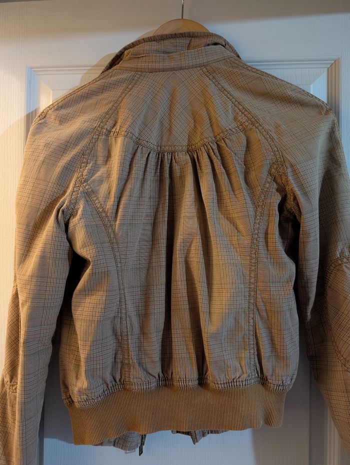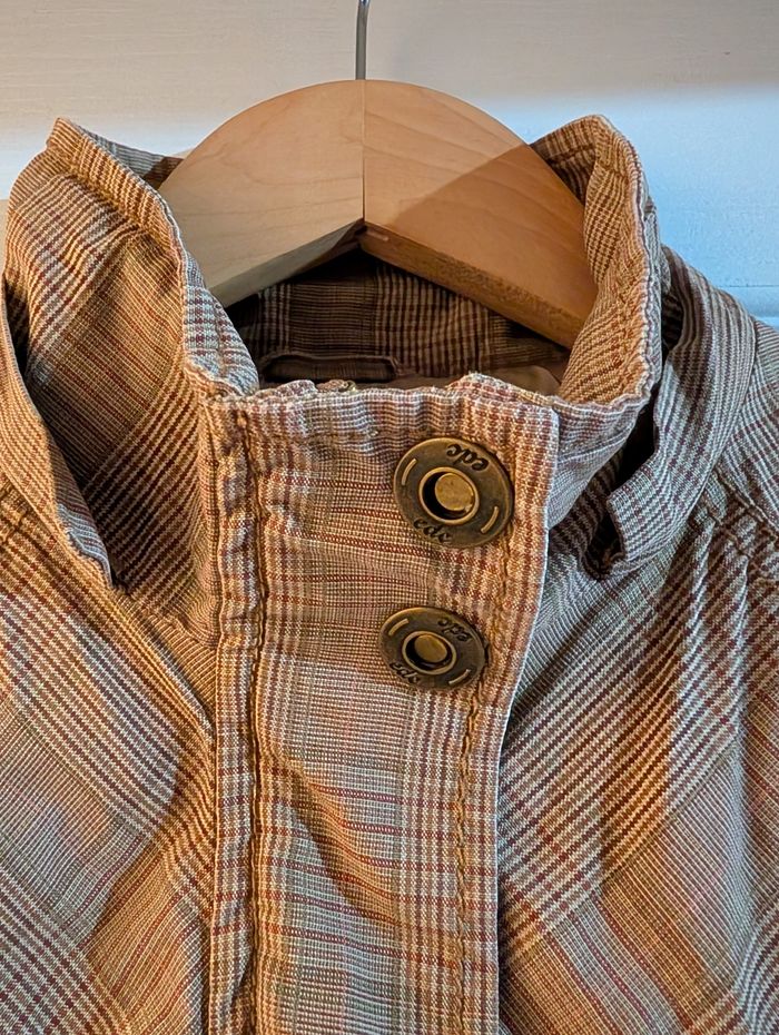 Blouson/veste marron imprimé carreaux. Taille XS. Marque EDC Esprit. Bon état, ne manque aucun bouton et les fermetures zippées fonctionnent bien.