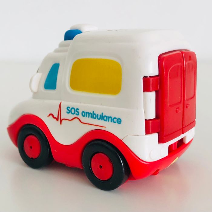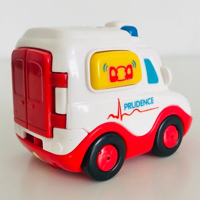 Je vends un véhicule tutut bolide interactif « Prudence SOS Ambulance », en très bon état. Lorsqu’on appuie sur le bouton sur le côté, les portes arrières s’ouvrent. Musique, sons et lumière. Piles non fournies.