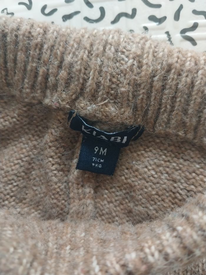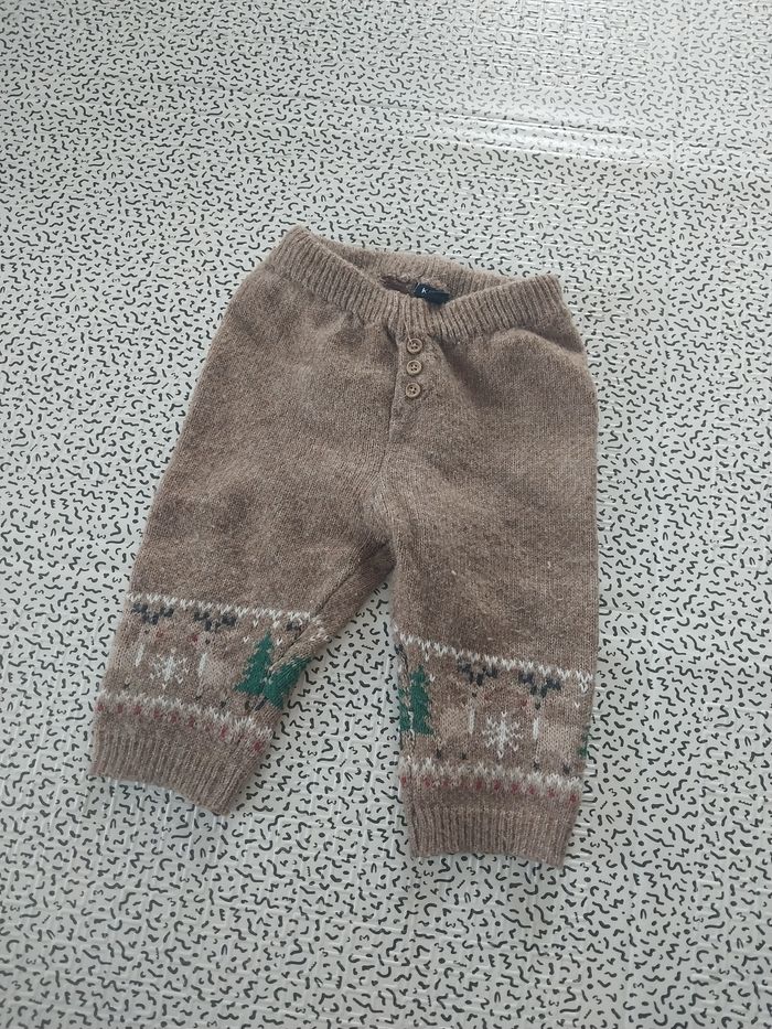 Joli pantalon maille couleur beige/châtaigne, motifs hivernaux (petits sapins, rennes, flocons). Très doux et confortable pour bébé. Taille élastique + boutons décoratifs. Idéal hiver / Noël / séances photos / sorties cosy 🧸❄️ Très bon état. Taille : 9 mois (71 cm / 9 kg) Marque : KIABI ➡️ Pas de défaut visible – maille en très bon état #bébé #bebegarçon #bebefille #9mois #kiabi