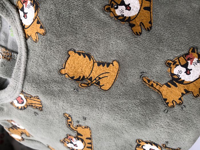 Pyjama hiver, grenouillère, dors bien Kiabi, Taille 6 mois/ 63-69 cm. En velours kaki, motifs tigres. Ouverture par pression à l’arrière. En excellent état, sans trou ni tache. Le velours est comme neuf. 🌸 Vous aimez cet article ? N’oubliez pas de visiter le reste de mon dressing en filtrant les tailles.