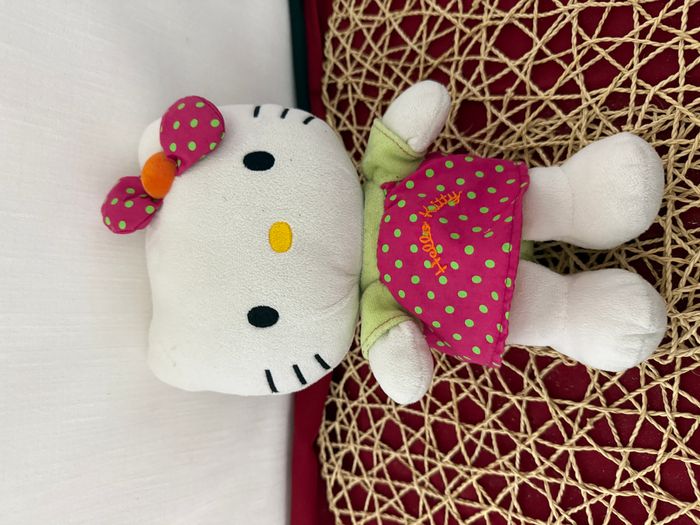 Doudou peluche chat HELLO KITTY rose vert pois SANRIO - photo numéro 1