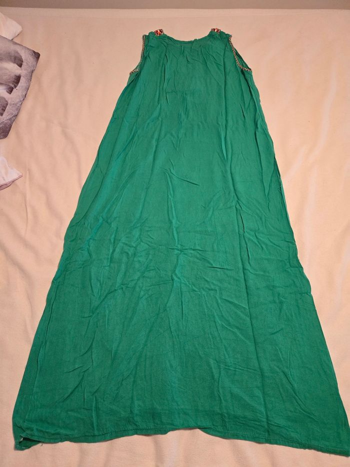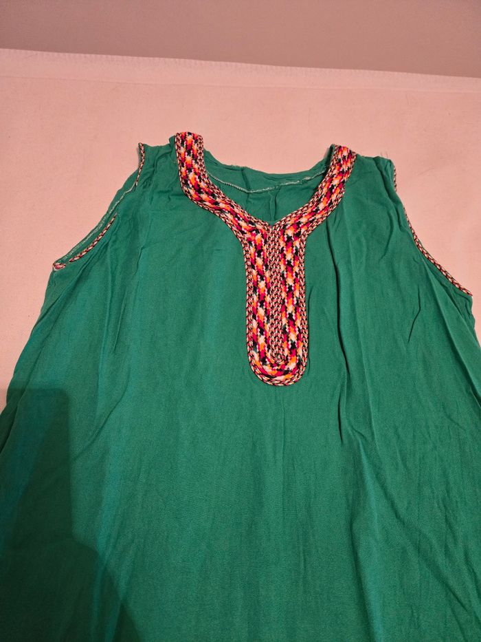 Je vends cette robe verte Kabile de taille unique. - Type de produit : Robe - Taille : Taille unique - Couleur : Vert - Caractéristiques : Col brodé, Sans manches N'hésitez pas à me contacter pour plus d'informations ou de photos.
